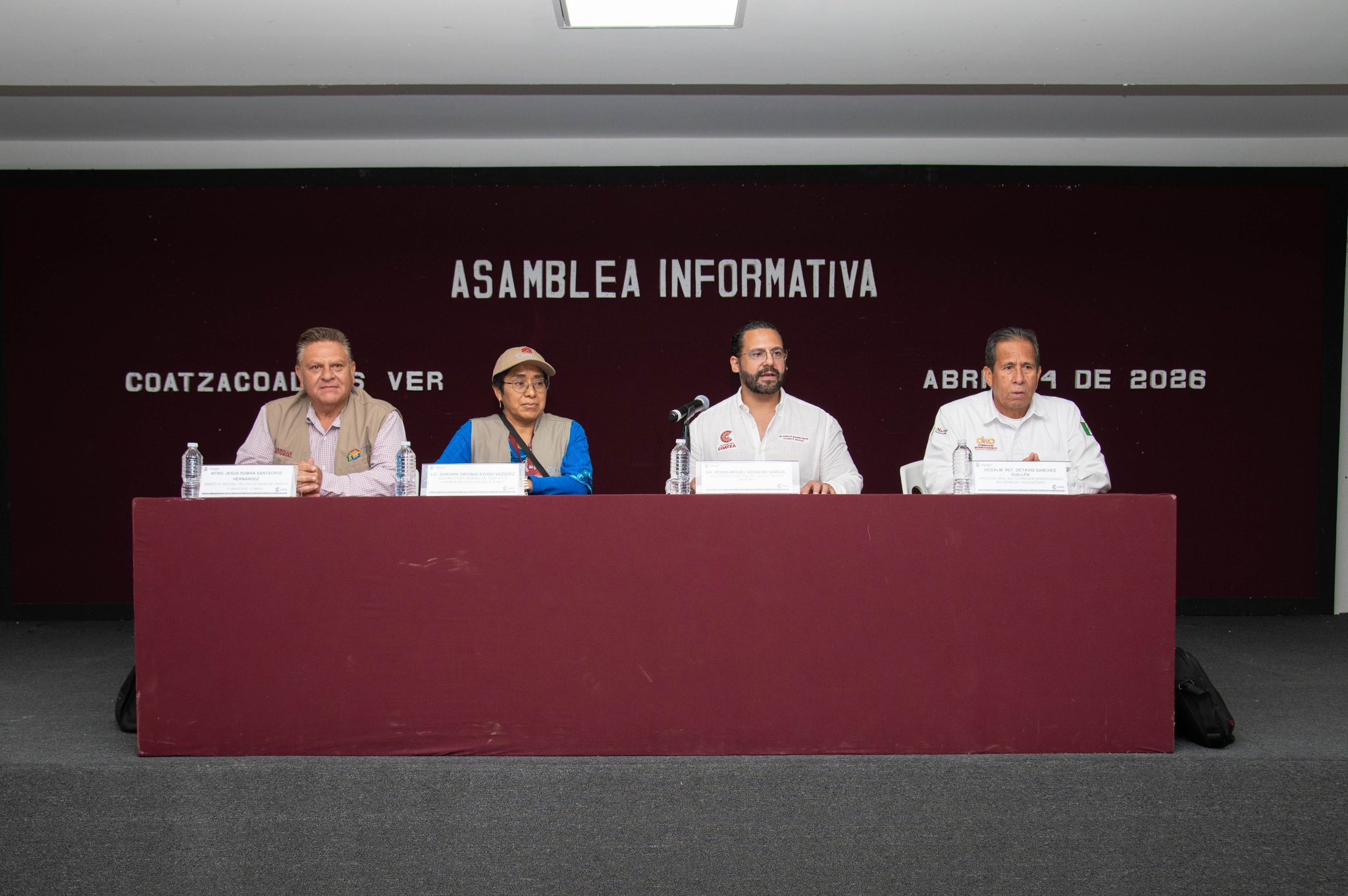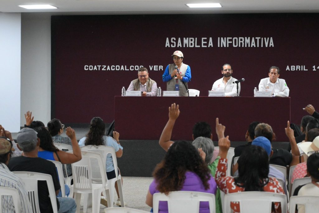 Coatzacoalcos, Ver., 14 de abril de 2026.- El presidente de Coatzacoalcos, Pedro Miguel Rosaldo García, participó en la asamblea informativa encabezada por la Comisión Nacional de Vivienda (Conavi) y el Corredor Interoceánico del Istmo de Tehuantepec (CIIT), dirigida a familias que habitan en el derecho de vía de la Línea Z y que serán reubicadas.